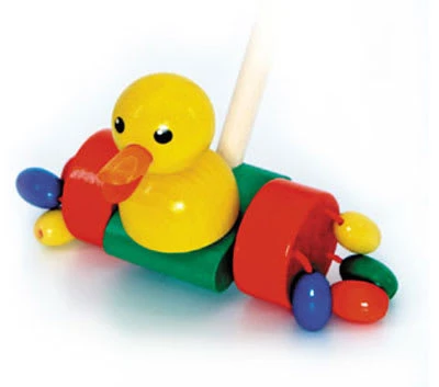farbenfrohes kindgerechtes Spielzeug zum Schieben aus Birkenleimholz