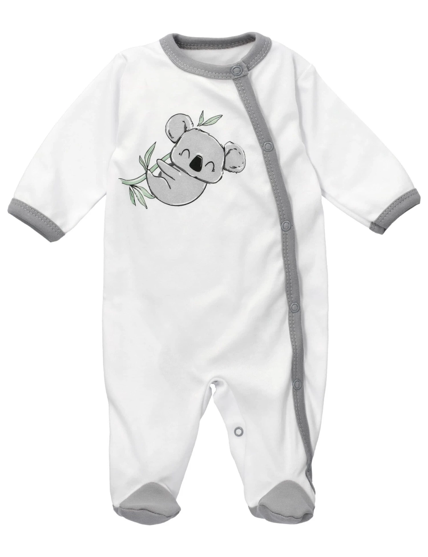 Dank der zeitlos schlichten Farbwahl sowie farbliche Akzente, kommt die knuffige Bärenschnauze auf der Brust besonders gut zur Geltung. Koalabären sind clever. Ebenso wie dieser Schlafanzug – neben dem hübschen Design überzeugt er nämlich durch die Anordnung der Druckknöpfe. Durch die Druckknopfleiste auf der Vorderseite wird das An- und Ausziehen und selbst das Wickeln zu einem Kinderspiel. (05776-001)
