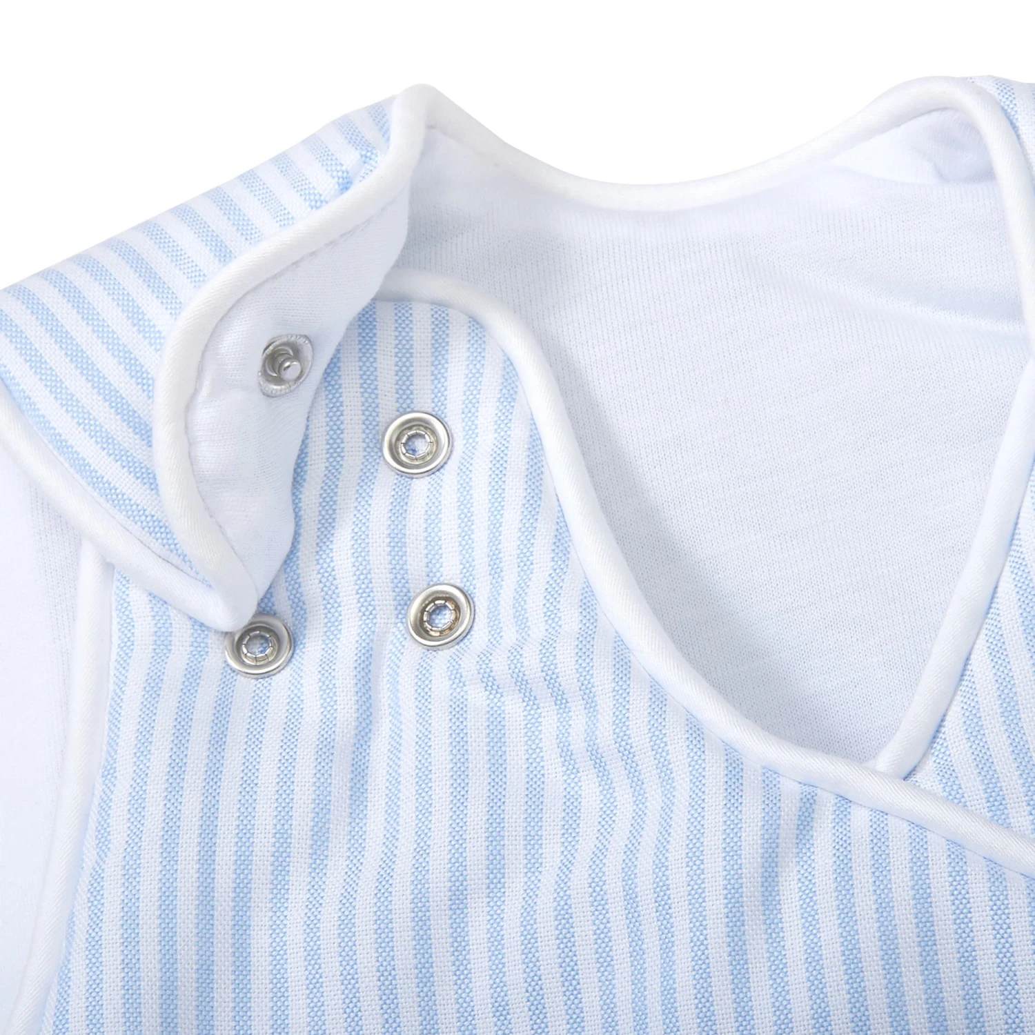 Vier Druckknöpfe an den Schultern geben extra Sicherheit, dass sich das Baby nicht selbst befreit und machen das An- und Ausziehen kinderleicht.