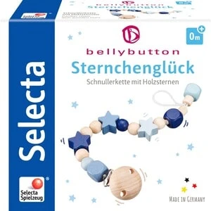 Die Schnullerkette Sternchenglück von Selecta besteht aus verschiedenen Holzperlen und -sternen. Schnullerkette von Selecta mit Holzperlen und -sternen mit Klippverschluss ab der Geburt aus Holz gefertigt Die Schnullerkette von Selecta sorgt dafür, dass kein Schnuller mehr verloren geht. Sie ist aus verschiedenfarbigen Holzperlen und -sternen gefertigt. Das macht das Baby neugierig, ermuntert zu vergnügtem Spiel und aktiviert zudem die motorischen Fähigkeiten. Die Schnullerkette ist durch den Klippverschluss leicht an der Kleidung oder am Wagen zu befestigen. Der Schnuller wird einfach an der Schlaufe befestigt.