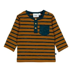 Ahoi: Ganz auf maritime Ringel setzt das Langarmshirt von Feetje. Ein klassischer Henley-Ausschnitt und eine Brusttasche runden das Design ab. Der softe Jersey sorgt bei Babys sofort für Wohlgefühl. Langarmshirt von Feetje geringelt, Brusttasche, Flammgarn Druckknöpfe in der Schulternaht klassischer Henley-Ausschnitt Jersey elastischer Baumwoll-Mix Niedliche Ringel machen den ersten Eindruck des Langarmshirt von Feetje aus. Ein klassischer Henley-Ausschnitt mit Knöpfen und eine aufgesetzte Brusttasche sorgen für den frechen Look des Oberteils. Flammgarn rundet das Design gelungen ab. Dank der in der Schulternaht versteckten Druckknopfleiste ist der Wäschewechsel eine leichte Übung. Das Oberteil aus einem weichen Baumwoll-Mix bietet eine perfekte Grundlage für entspannte Baby-Outfits.
