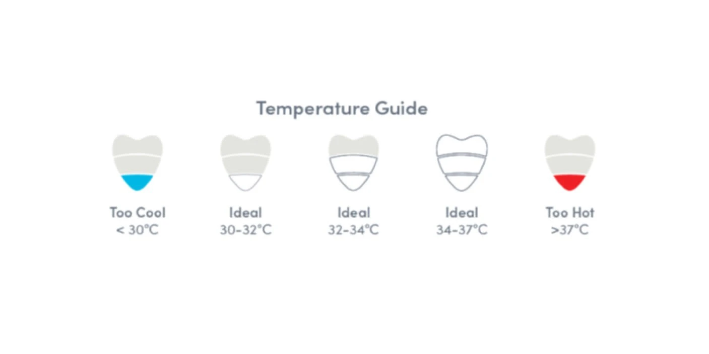 Für die Benutzung leicht schütteln und ins Wasser fallen lassen. Das einfache, leuchtende Display zeigt schnell und genau an, ob das Wasser zu heiß, zu kalt oder genau richtig ist.