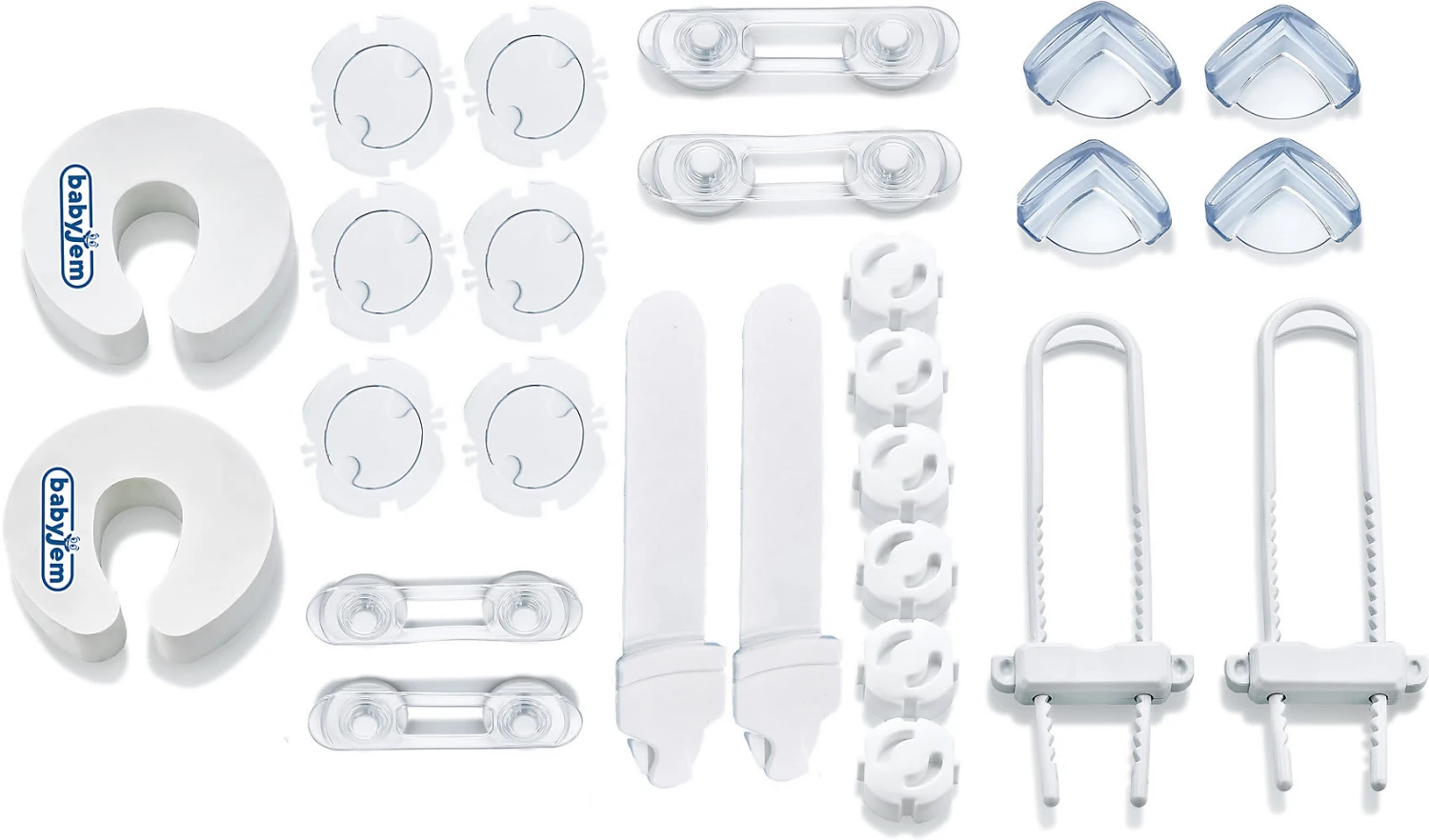 Mit dem 26-teiligen Babyjem Sicherheitsset minimieren Sie die Gefahren, die im Haushalt auf Kinder lauern. Mit diesem Set gehören einklemmte Kinderfinger und Zusammenstöße mit spitzen Kanten der Vergangenheit an.