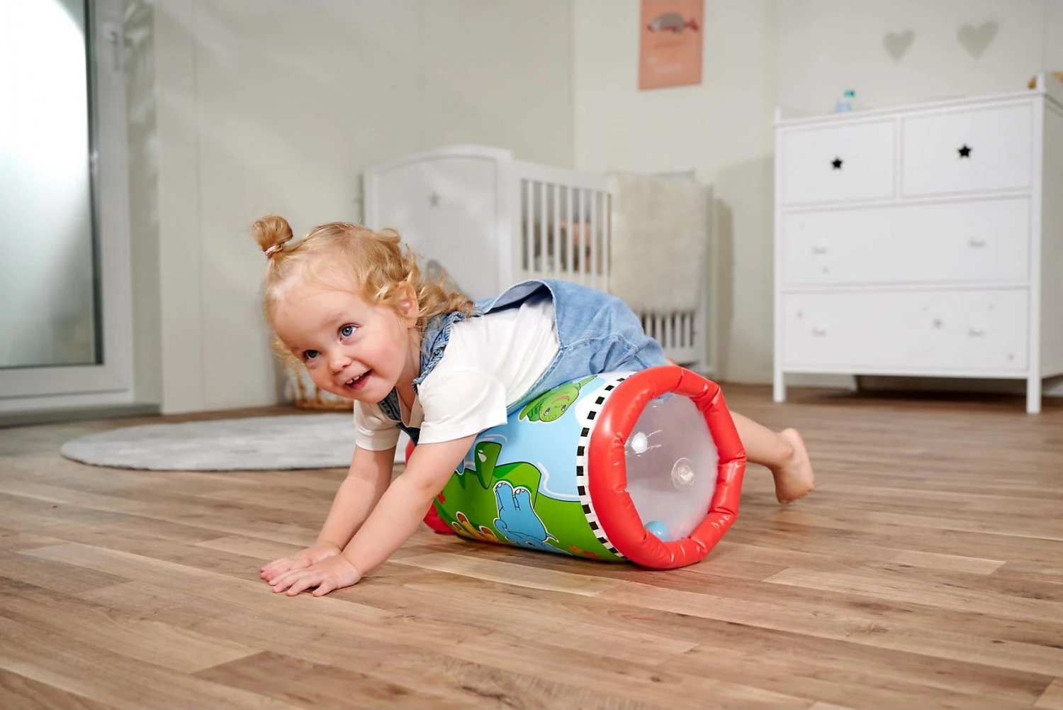 Die kunterbunte Krabbelrolle von ABC ist ein echter Hingucker und bringt Bewegung ins Kinderzimmer.