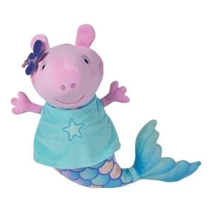 Peppa begeistert ihre Fans auch als fesche Meerjungfrau: Das niedliche Kuscheltier aus der Reihe Peppa Pig von Simba ist besonders weich und bietet Minis mit der langen Flosse einen tollen Anblick. Kuscheltier Peppa aus der Peppa Pig-Reihe von Simba im Meerjungfrau-Design, Shirt mit Sternstickerei, Blumenspange und langer Flosse Länge 30 cm aus Textil ab Geburt geeignet Auch Peppa Pig mag es, einmal eine andere Rolle einzunehmen: Hier begeistert sie als kleine Meerjungfrau mit einer langen Flosse. Ein Shirt mit Sternstickerei und eine kleine Blumenspange am Ohr ergänzen stimmig das Design. Das Stofftier ist flauschig weich und nachgiebig: Da fällt es schon den Kleinsten leicht, mit Peppa zu kuscheln und schmusen. Die softe Textur und die schillernde Optik der Flosse machen Minis neugierig. Sie animiert dazu, die verschiedenen Farben und Formen anzusehen, zu greifen und das Stofftier zu entdecken. Peppa aus der Peppa Pig-Reihe von Simba ist aus anschmiegsamem Plüsch gefertigt. Das neue Lieblingstier ist ab der Geburt geeignet.