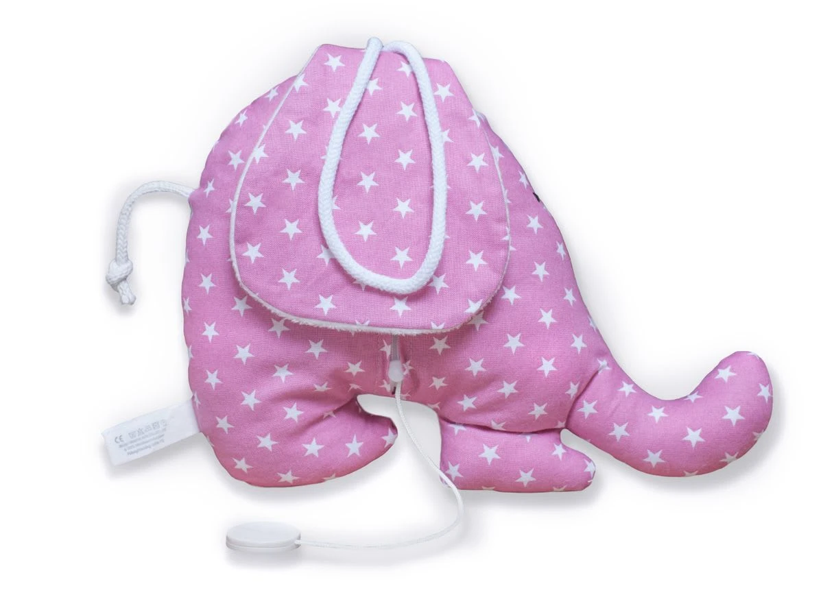 Unser Elefant Albertine beruhigt die Kinder mit „Brahms Wiegenlied“, falls Du eine andere Melodie bevorzugst, kannst Du das Spielwerk leicht austauschen: