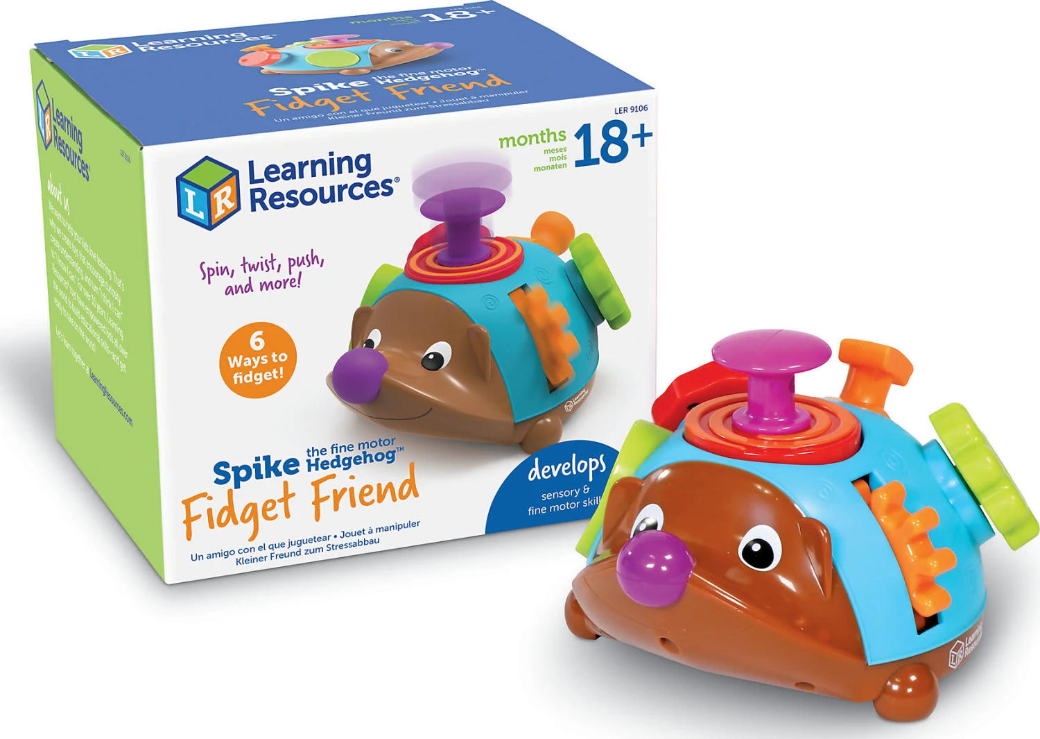 Hier kommt Spike, der Feinmotorik-Igel® Freund aus dem Hause Learning Resources® und sorgt für abwechslungsreichen Spielspaß! Insgesamt sechs tolle Experimentiermöglichkeiten fördern spielerisch die Koordination und Feinmotorik. Das Rad, die Kurbel und der Knauf sind drehbar, den Knopf und den Stößel kann man drücken und der Schalter lässt sich ebenfalls bewegen. Auf diese Weise wird Abwechslung garantiert!