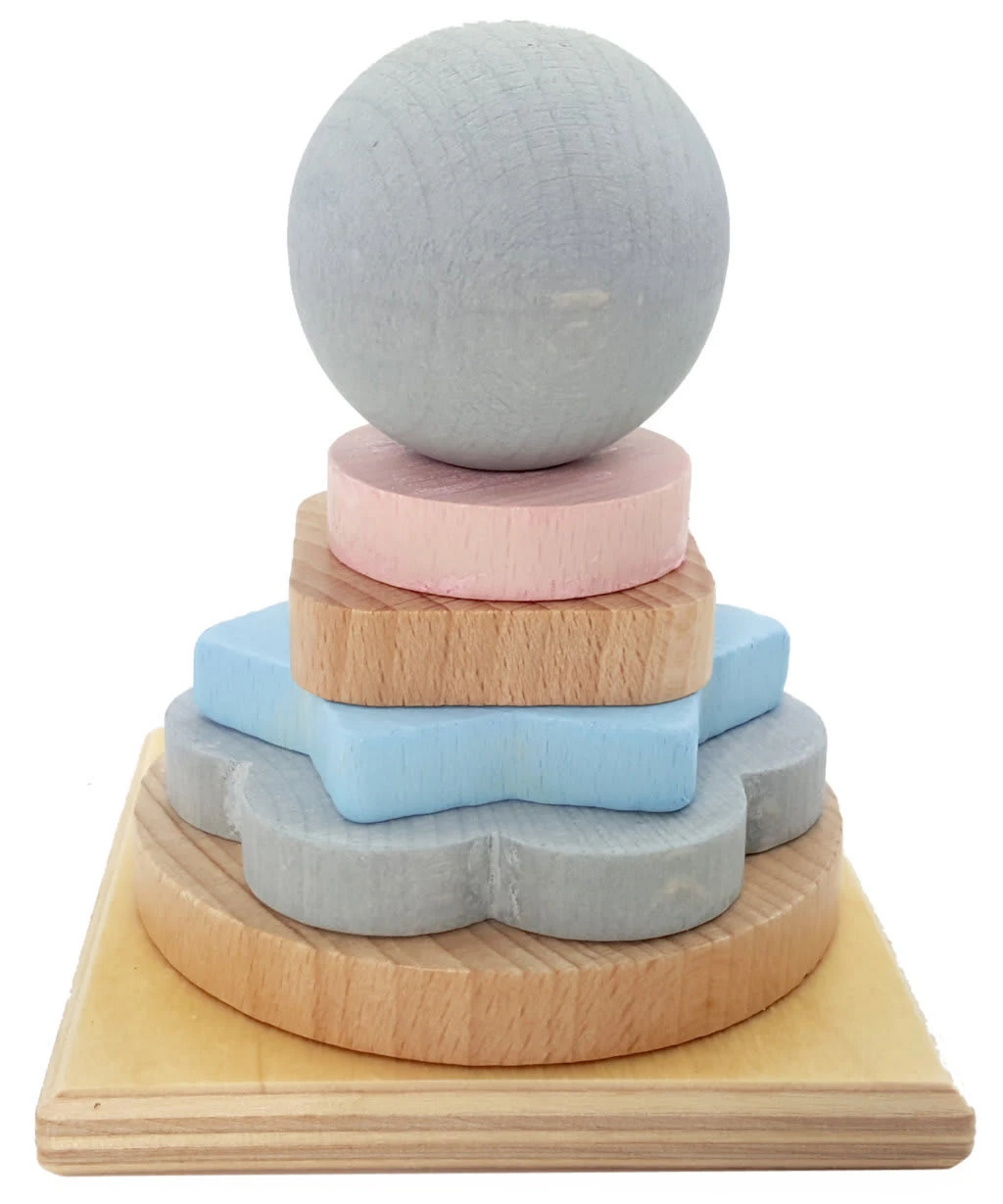 Das Übereinanderstapeln der verschieden farbigen Holzteile des Stapelturmes fördert die Koordination und Motorik von Kindern. Schnell lernen die Kinder das Sortieren nach Größe und Farbe bauen dem Turm ohne Hilfe alleine auf. Durch die bunte Farbgebung macht das Spielen immer wieder neuen Spaß