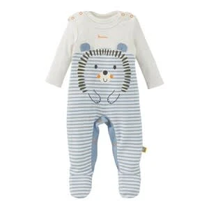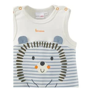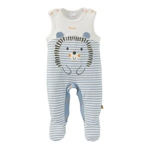 Mit dem Strampler-Set von BORNINO sind kleine Igel-Fans im Handumdrehen angezogen. Strampler-Set von BORNINO Body: unifarben, „bornino“-Schriftzug, Schlupfkragen, Druckknöpfe im Schrittbereich Strampler: Ringel-Look, Igel-Print mit applizierten Ohren und „bornino“-Schriftzug, Druckknöpfe an den Schultern und im Schrittbereich, angesetzte Füßchen Interlock-Qualität reine Baumwolle Beide Set-Teile sind aus reiner Baumwolle in Interlock-Qualität gefertigt. So liegt das Strampler-Set immer angenehm weich auf der Haut. Der Body kommt mit einem Schlupfkragen, der den Kleinen das lästige Anziehen über den Kopf erleichtert. Body und Strampler sind mit Druckknöpfen im Schrittbereich ausgestattet, die Mama und Papa beim Wickeln unterstützen. Der Strampler verfügt zusätzlich über Druckknöpfe auf den Schultern. Angesetzte Füßchen sorgen dafür, dass nichts verrutscht. Liebevoll designte Details machen das Strampler-Set zum neuen Lieblings-Teil kleiner Tierfreunde. Hinweis Der Artikel kann nach dem Waschen etwas einlaufen, bestelle daher besser eine Größe größer.