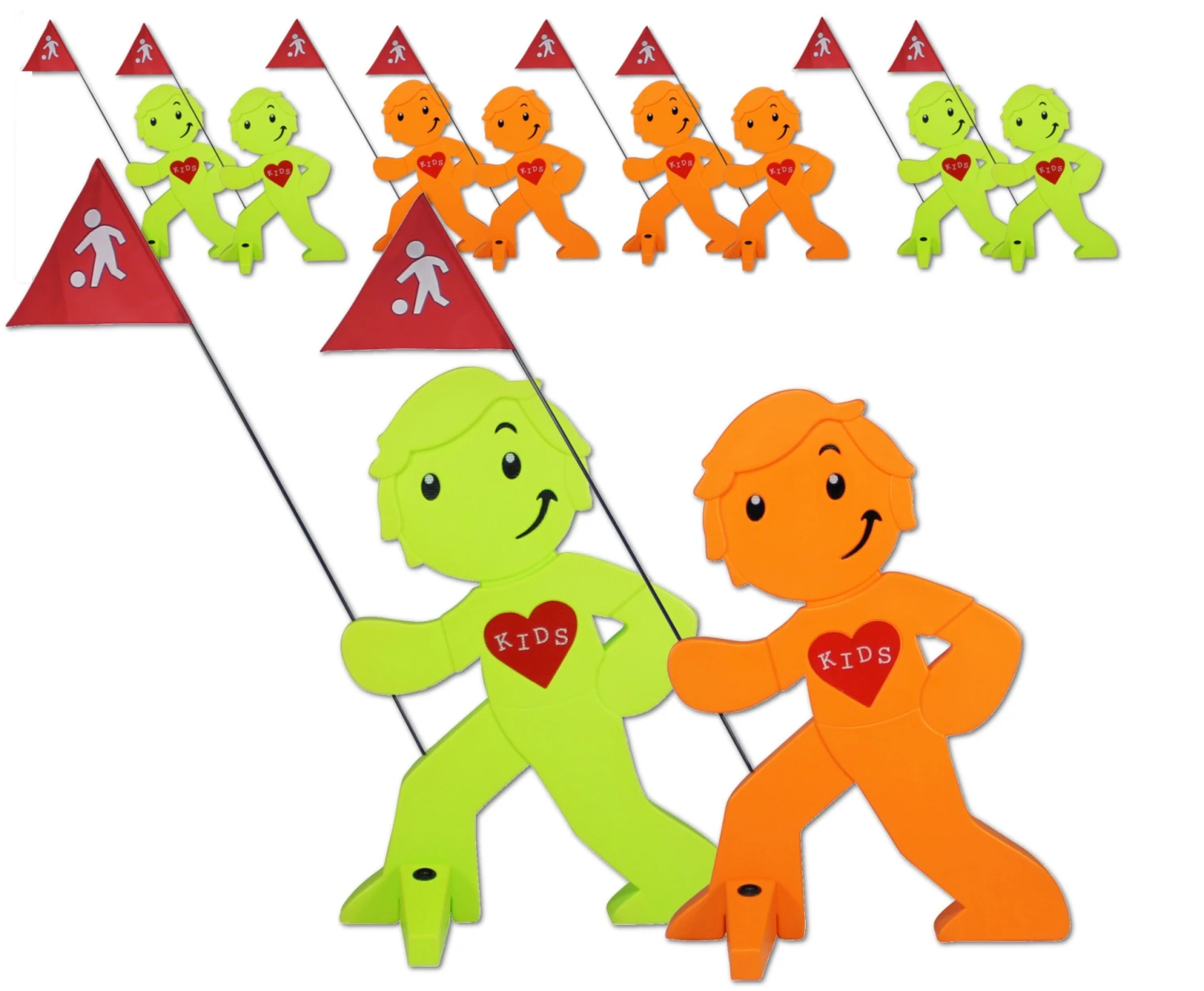 StreetBuddy Warnfigur Für Kindersicherheit In Grün Und Orange, 10-er Pack