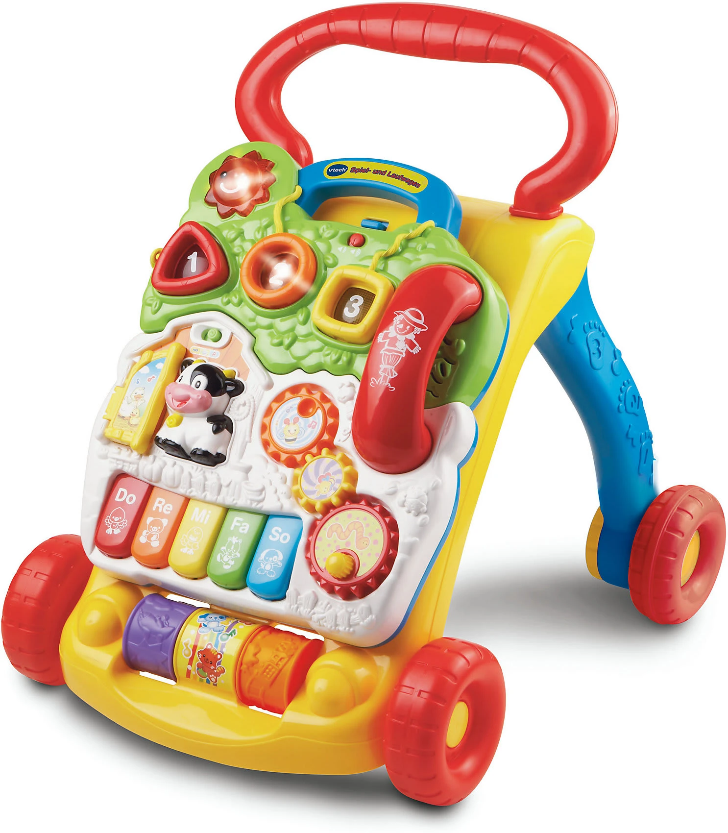Der kunterbunte Spiel- und Laufwagen in der Farbvariante rot/blau von Vtech Baby hilft Ihrem Baby bei seinen ersten Schritten!
