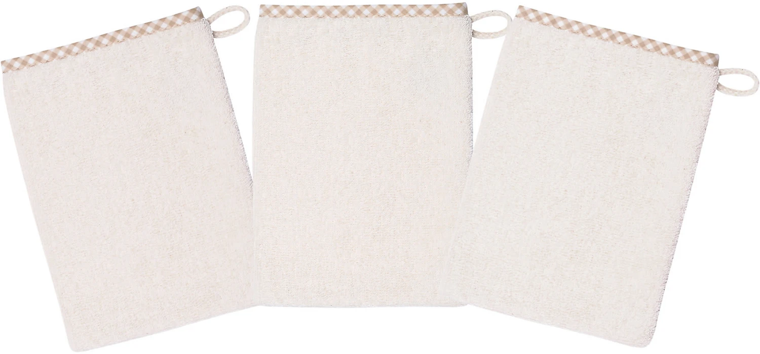 Waschhandschuh 3er Set, Natur, 15 X 20 Cm