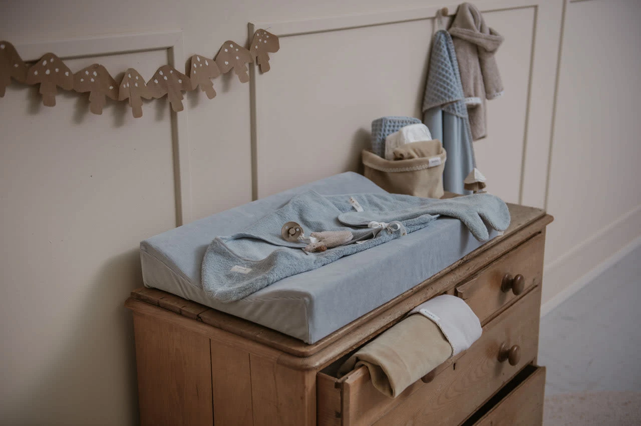 Ein Koeka Wickelauflagenbezug erleichtert nicht nur das Wickeln deines Babys, sondern vervollständigt auch das Styling deiner Kommode. Für den Komfort deines Babys und zur Erleichterung für dich ist ein Bezug für die Wickelauflage ein Muss, denn durch die glatte Oberfläche der Wickelauflage verwendest du sie normalerweise nicht ohne Bezug. Welchen Bezug du wählst, hängt natürlich von deinem Geschmack und der Einrichtung deines Babyzimmers ab. Da Wickelauflagenbezug häufig gewaschen wird, sind alle Wickelauflagenbezüge von Koeka waschmaschinentauglich. Ein Unfall kann schnell passieren, daher sind mehrere Bezüge kein überflüssiger Luxus! Magst du gerne Abwechslung? Wähle aus verschiedenen Stilen und gebe deiner Kommode jedes Mal einen anderen Look. Überprüfe die Maße deiner Wickelauflage, um eine schöne, passende Wickelauflage zu finden. Dieser Bezug misst 45×73 cm und passt perfekt zu Koekas „Time to Change“ Wickelauflage. Die Befestigung des Bezugs ist ähnlich wie bei einem Spannbetttuch. Du kannst ihn einfach um die Wickelauflage ziehen, und der Bezug zieht sich durch das Gummiband an der Unterseite selbst fest.