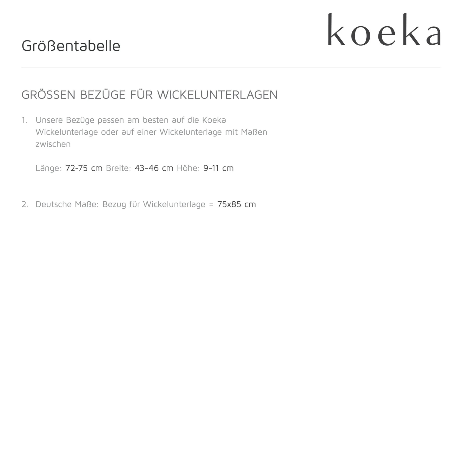 – Für einen gut sitzenden Wickelunterlagenbezug überprüfen Sie die Größe Ihrer Wickelunterlage. Dieser Wickelunterlagenbezug misst 45 x 73 cm.