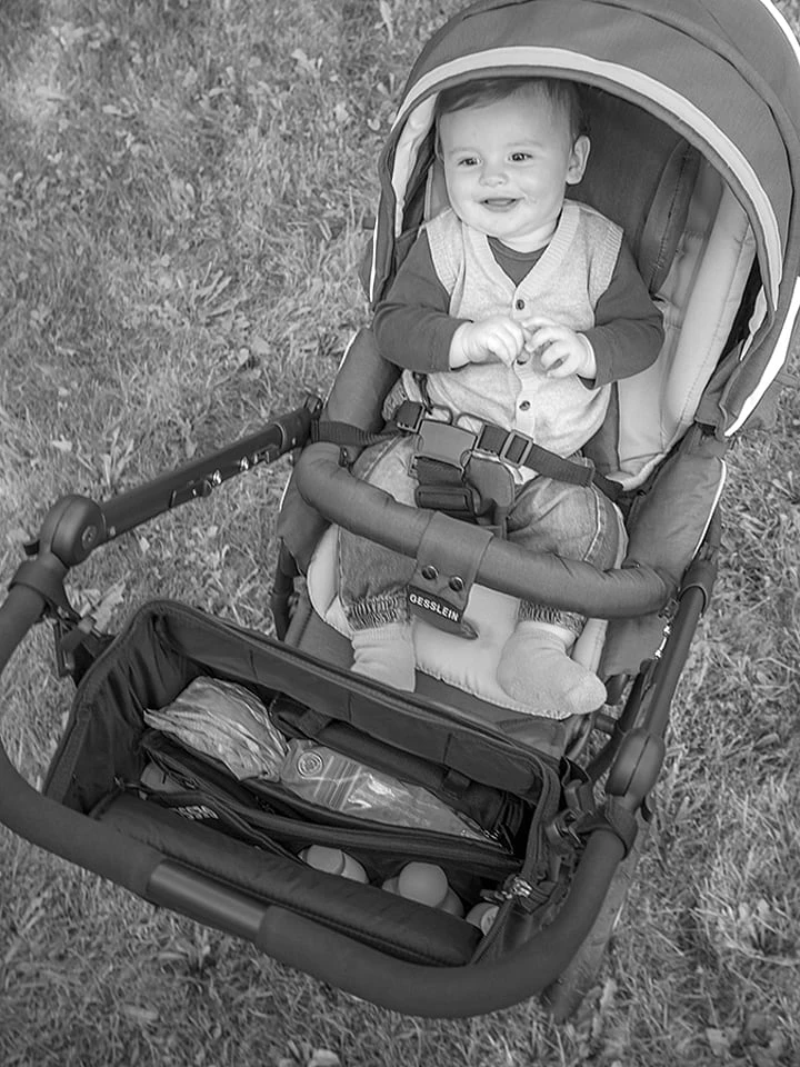 – Befestigungsmöglichkeit am Kinderwagen-Schieber: ja