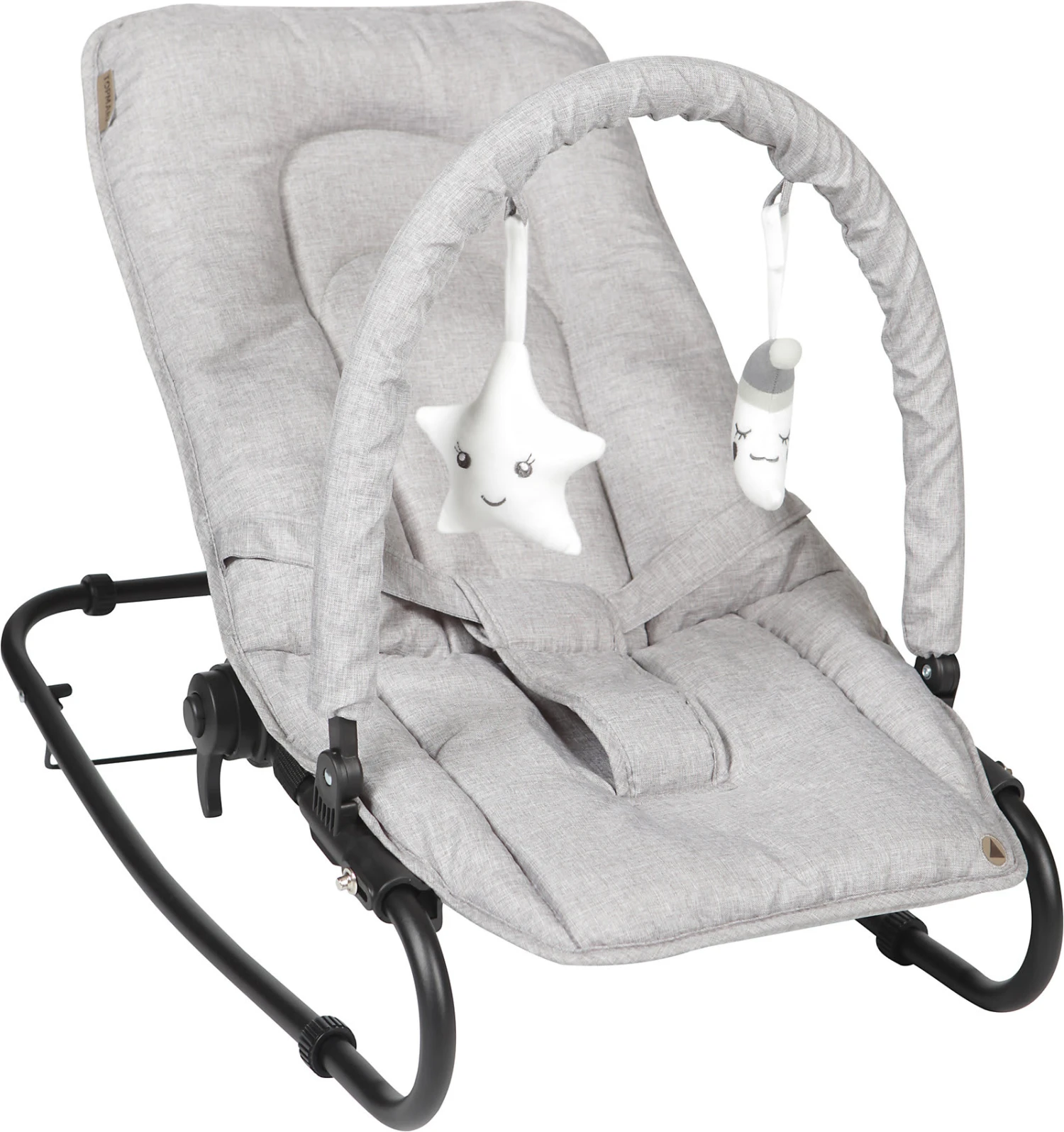 Die Wippe Jessy punktet mit einem anatomisch geformten Sitz und gepolsterten Seitenflächen, so dass es das Kind stets bequem hat. Der Spielbogen regt außerdem die Sinne des Babys an.